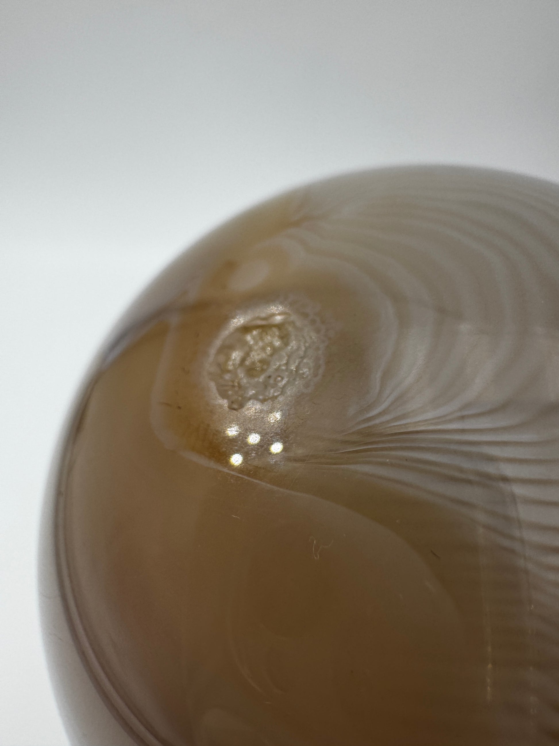 Leider hat die Kugel 2 kleine Macken. Dies wurde im Preis berücksichtigt. Sh. Letzte beiden Fotos.