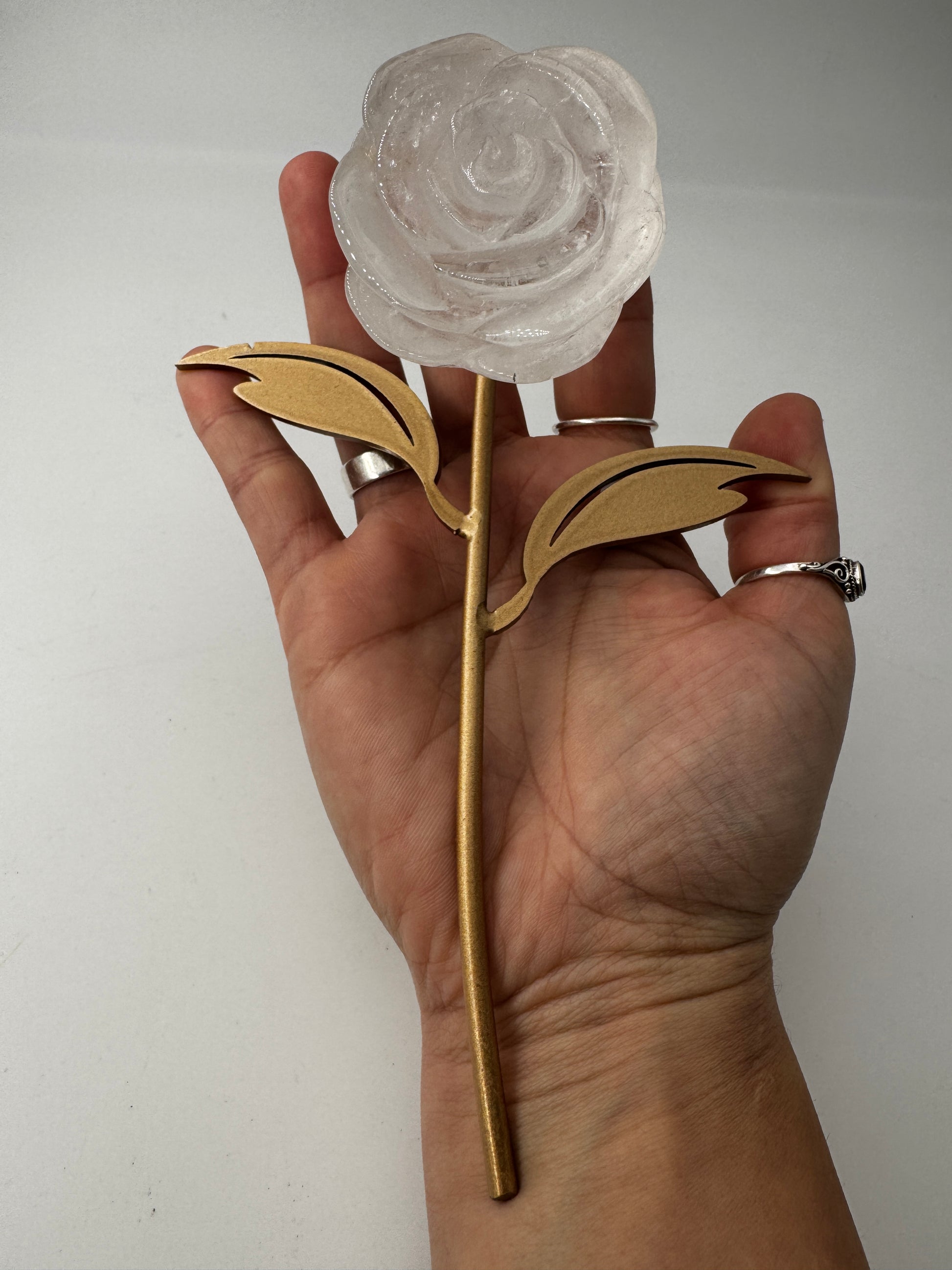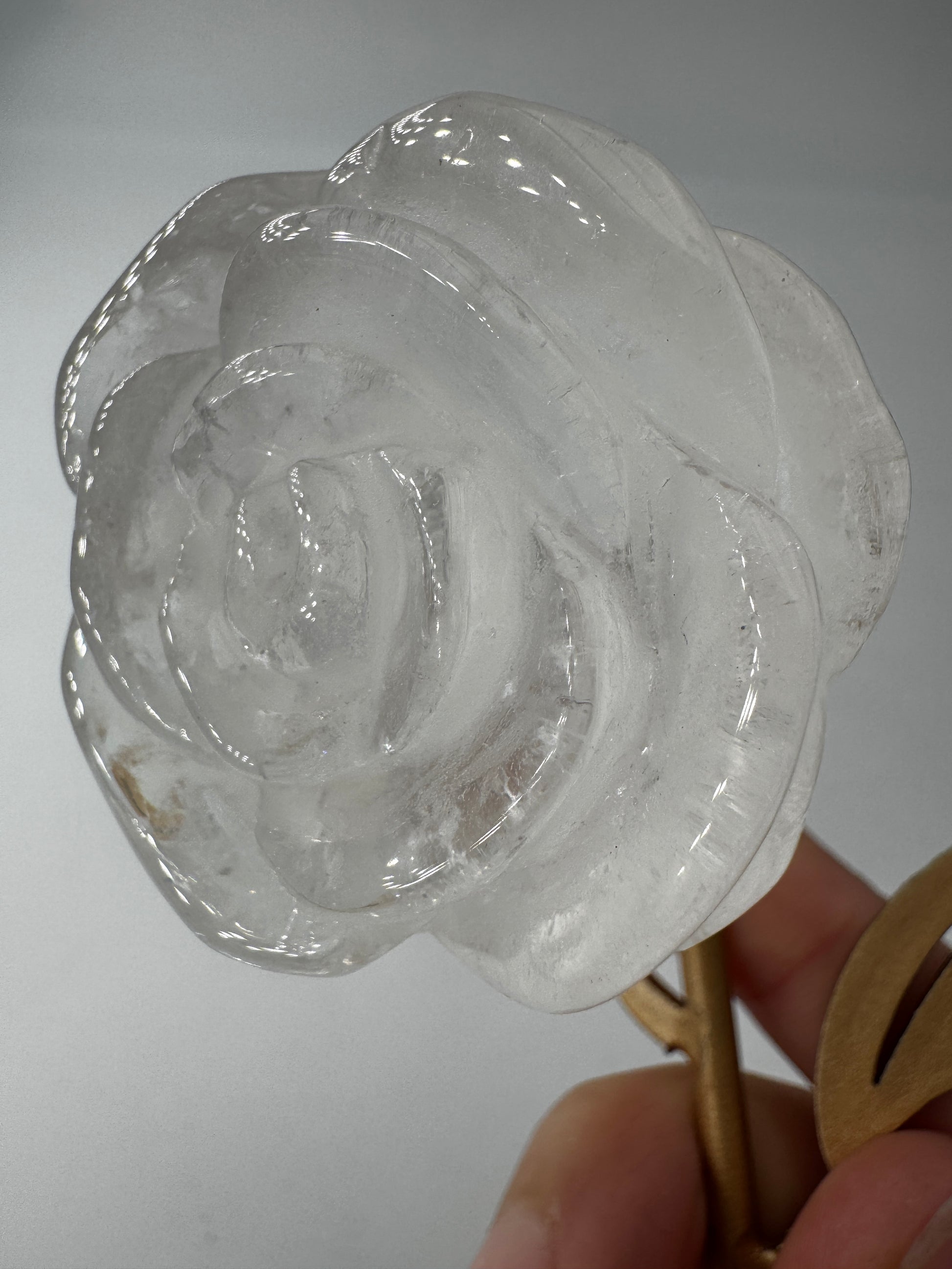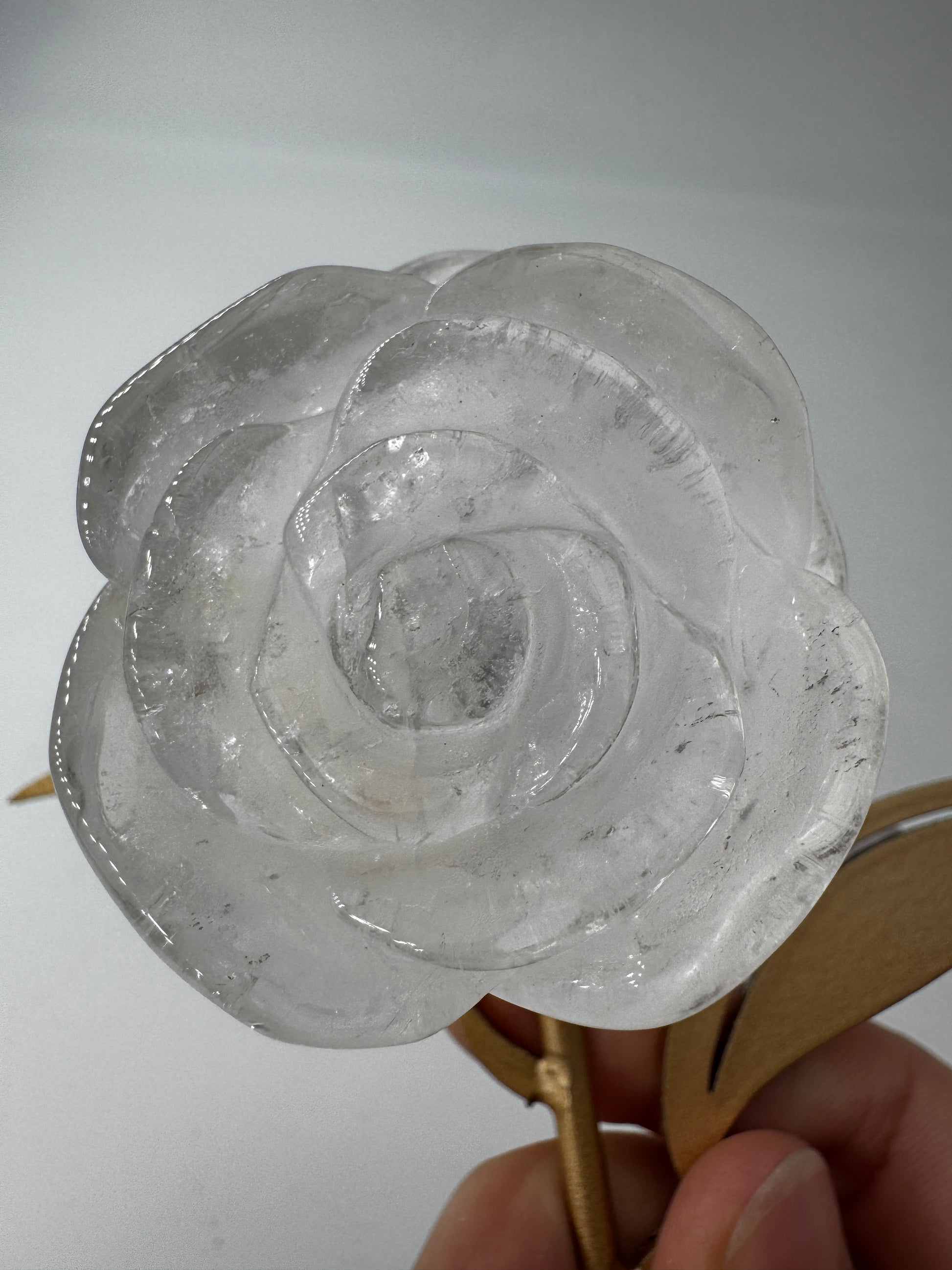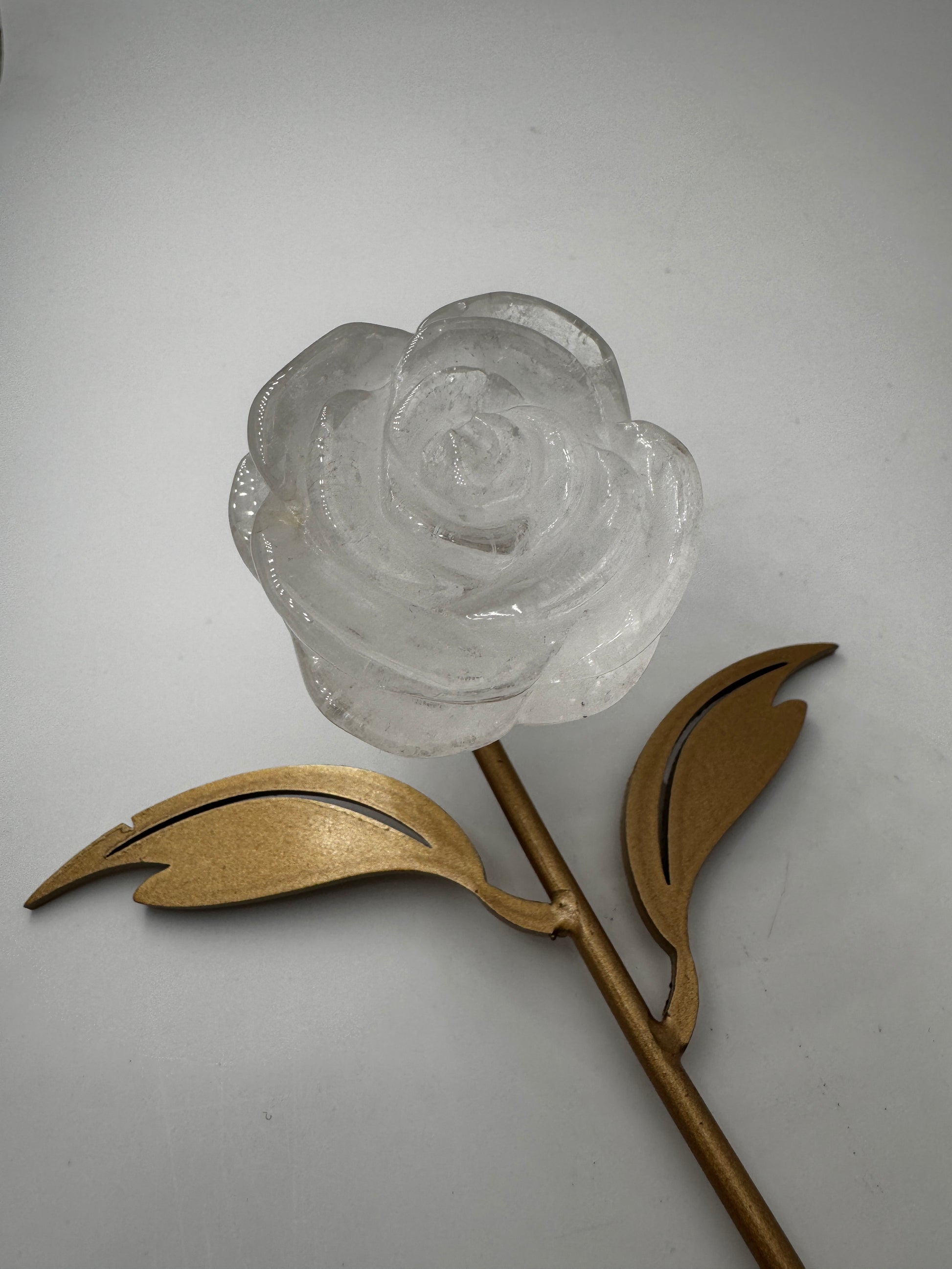Rose aus Bergkristall mit Ständer - FR39