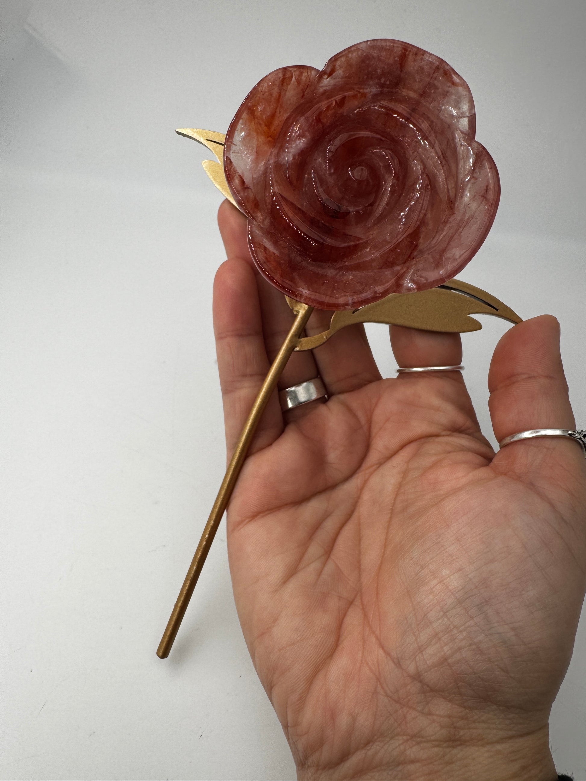 Rose aus Feuerquarz mit Ständer - FRB42
