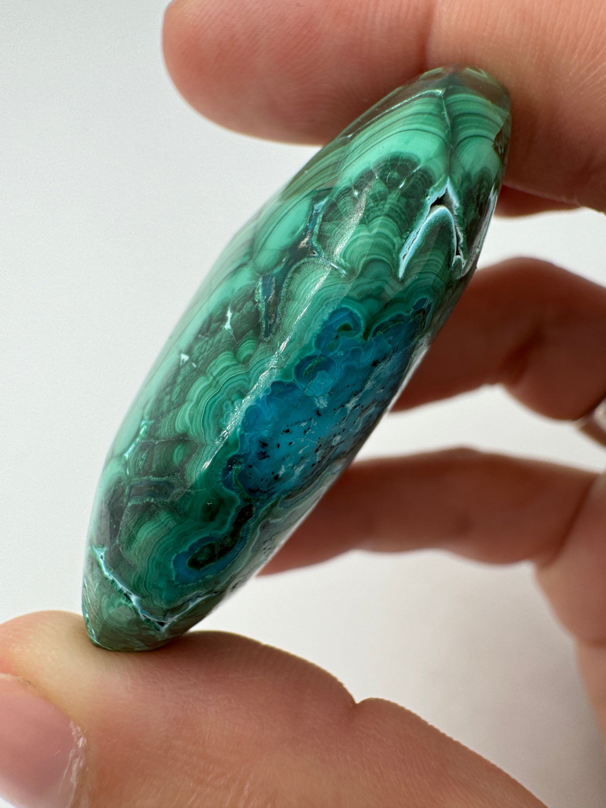 Handstein aus Malachit mit Chrysokoll